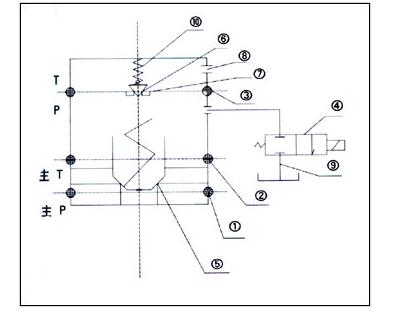 从示意图中可以看出,这是一个典型的先导式溘流阀的结构。带远控口,远控口接卸荷阀。