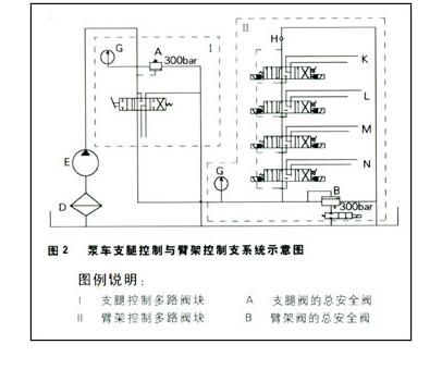 图2 力士乐柱塞泵车支腿控制与臂控制支系统示意图